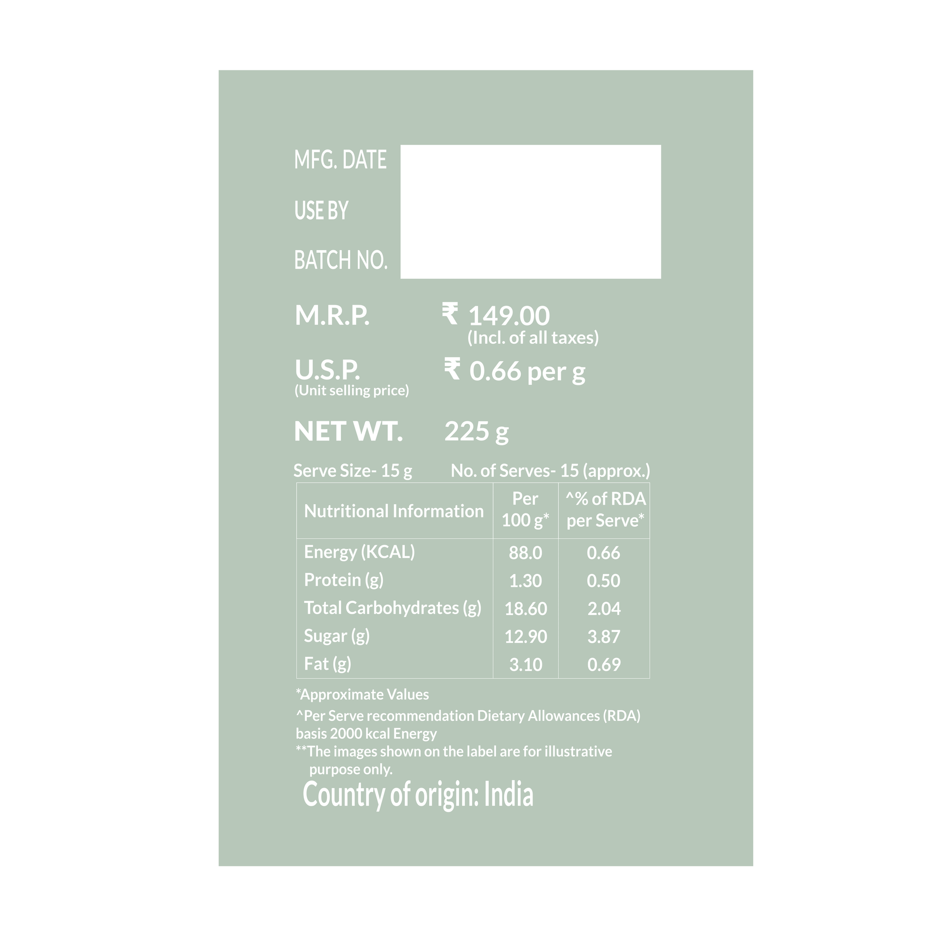 Net weight: 225 g