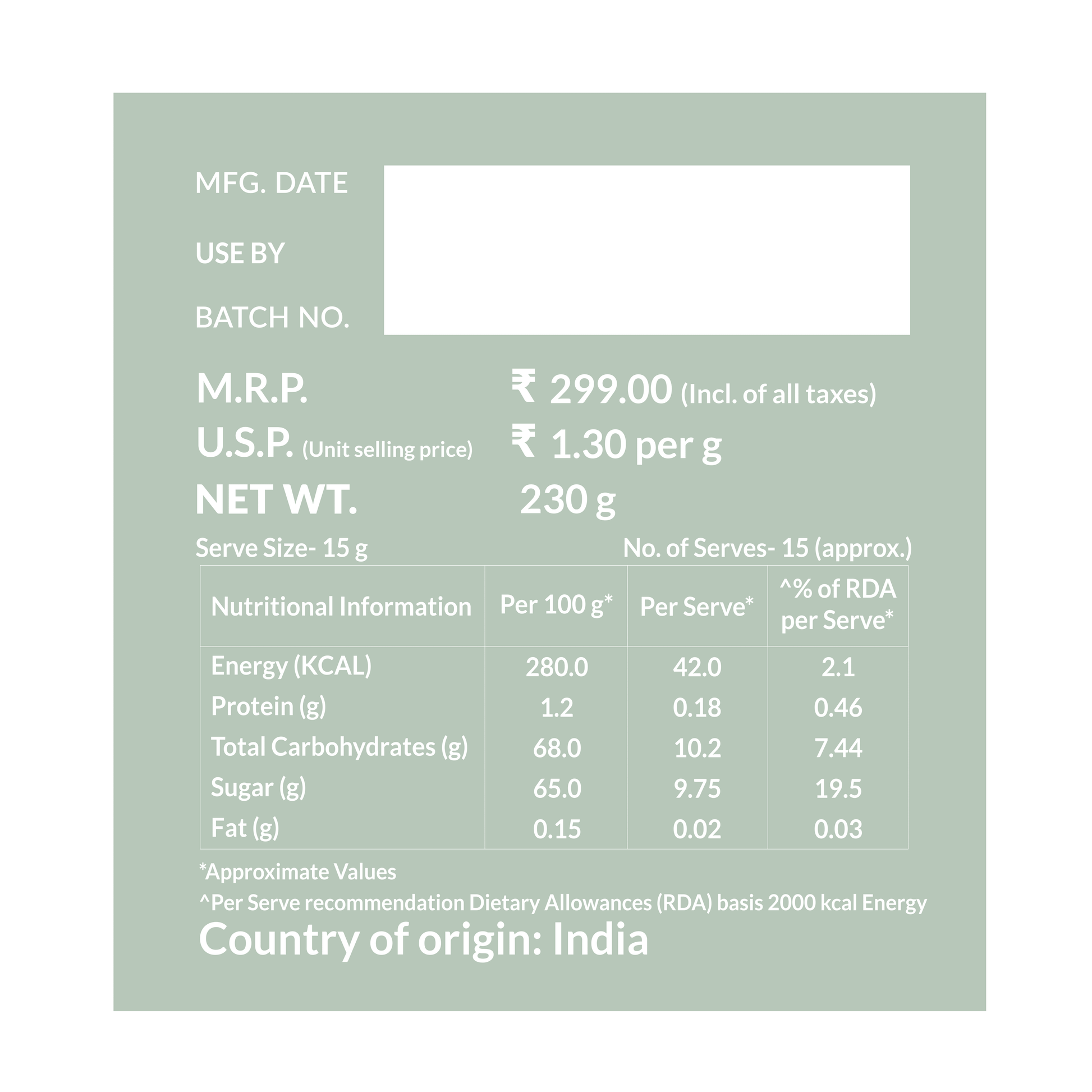 Net weight: 230 g
